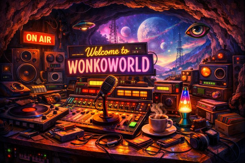 This is WonkoWorld. Not a brand. Not a lifestyle. More like a frequency you accidentally tune into at 2:17 a.m. when the sensible stations have gone to bed and the dial starts whispering back.